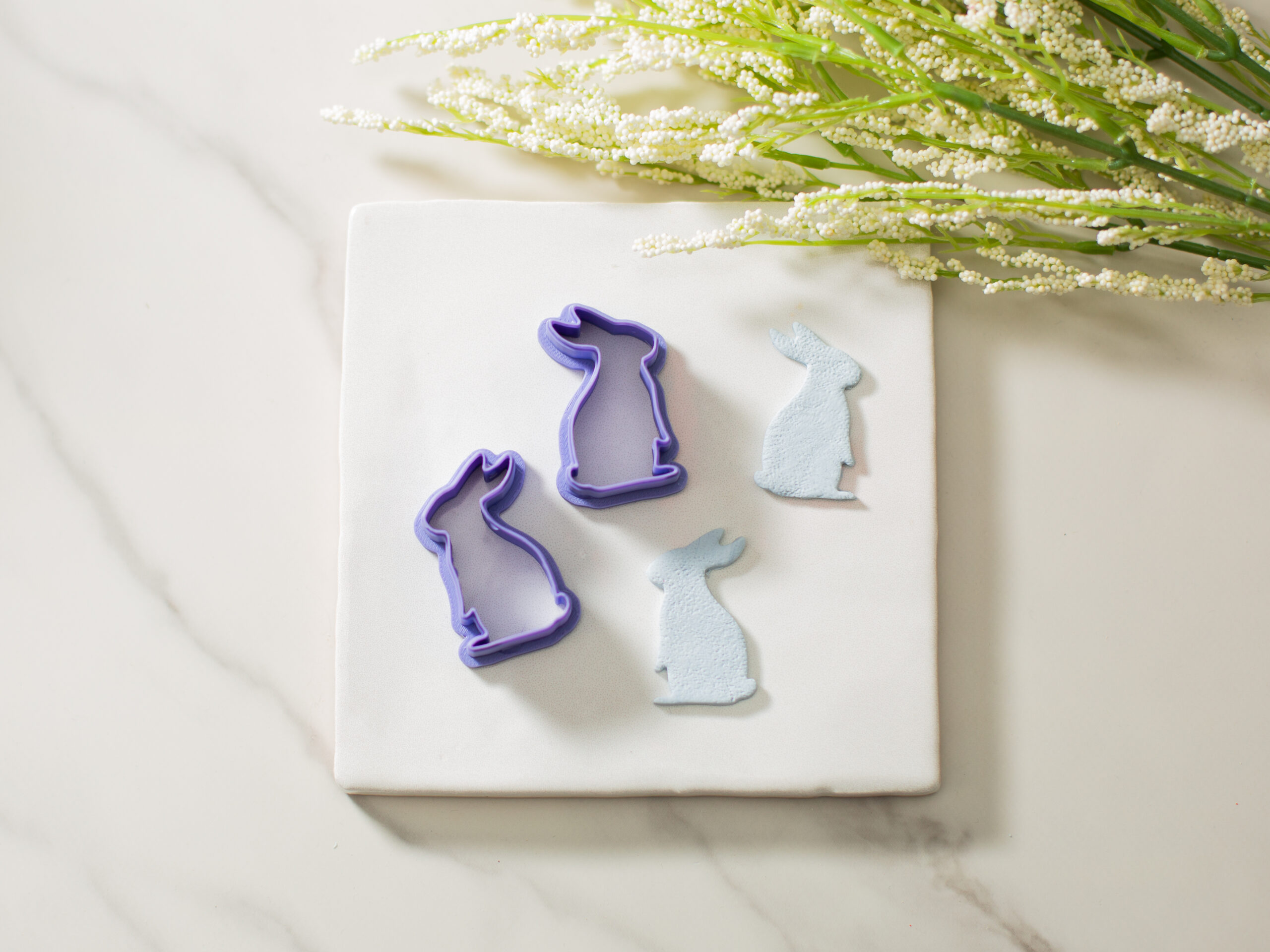 Our fun Bunny Set includes a mirrored pair of polymer clay cutters.