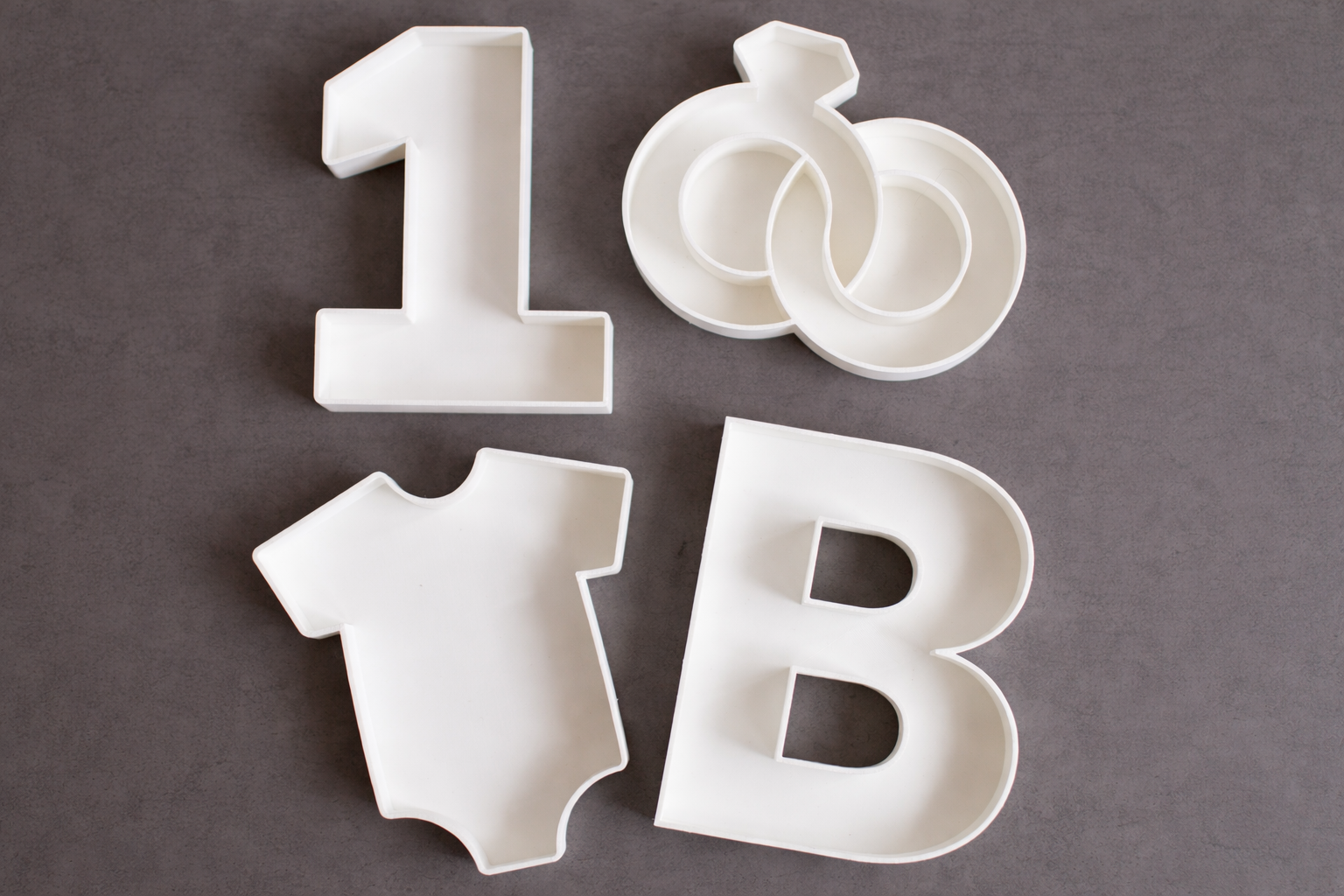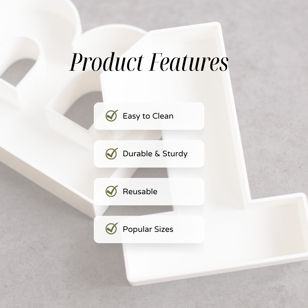 Custom party candy and snack trays in letters, numbers, and shapes. Reusable, lightweight, and perfect for birthdays, showers, and celebrations.
