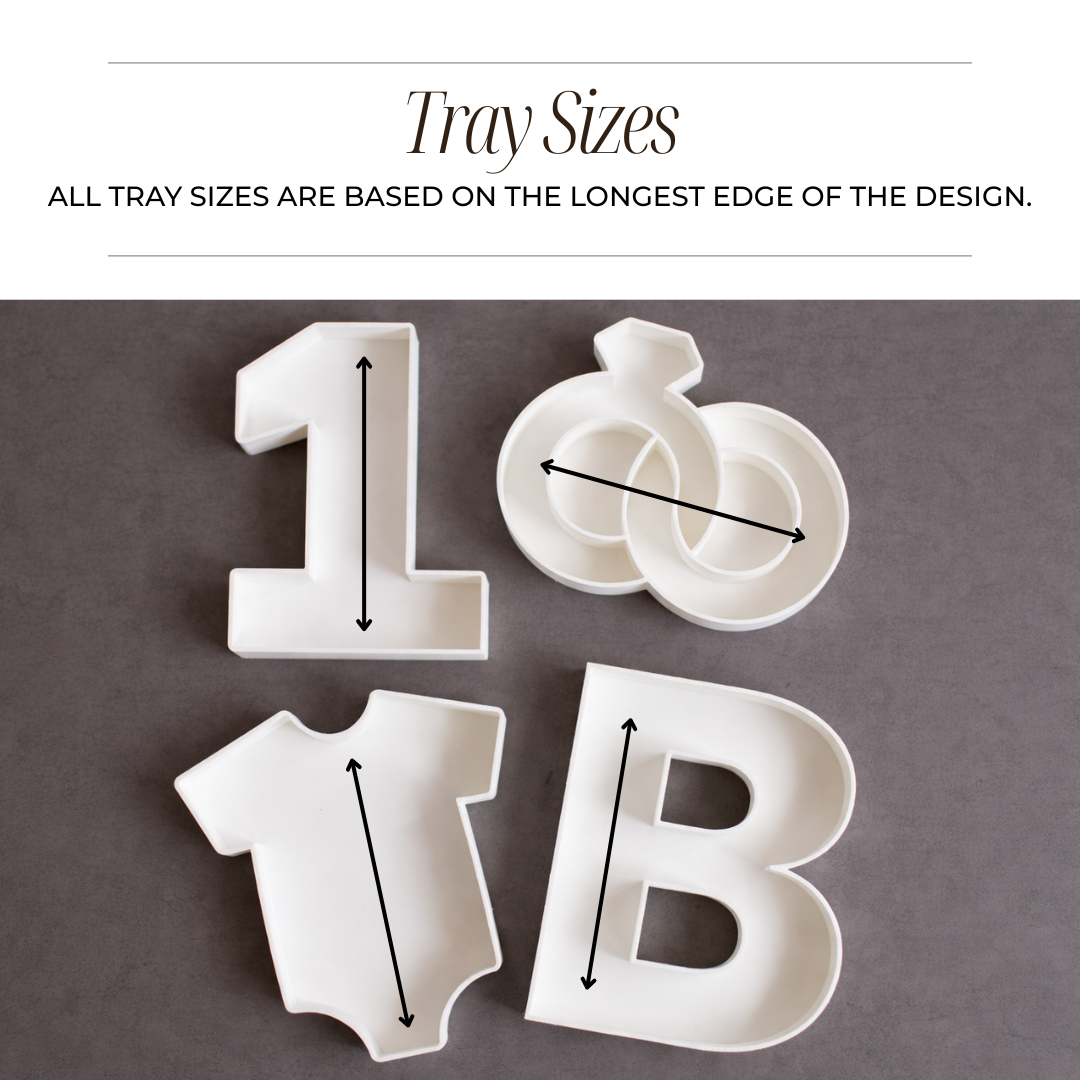 Add a fun and stylish touch to your celebration with our custom party trays, available in letters, numbers, and select image designs. These versatile trays are perfect for candy, snacks, and small bites, making them a standout addition to baby showers, wedding showers, birthdays, anniversaries, and more.