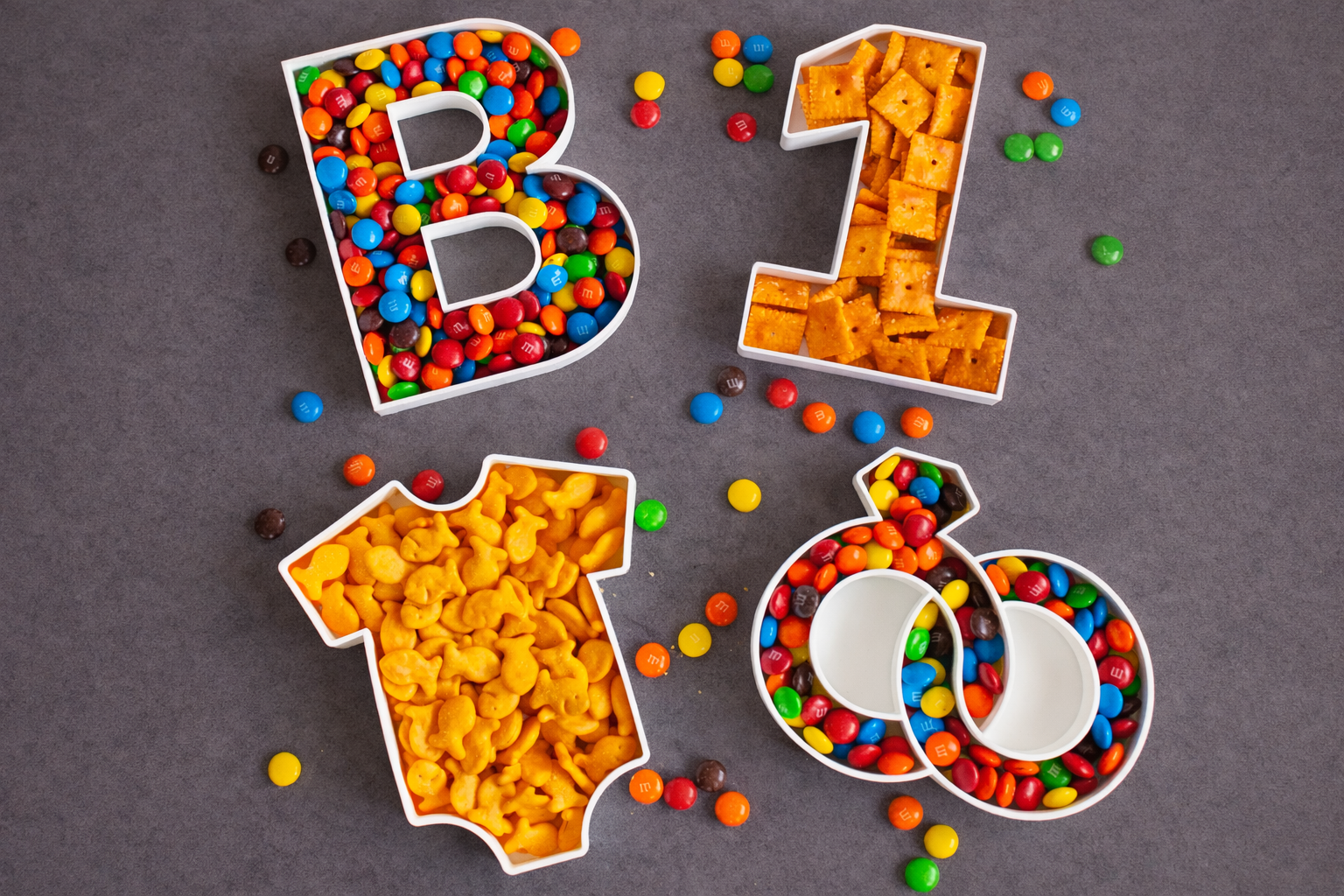 Custom Party Candy & Snack Trays – Letters, Numbers & Shapes