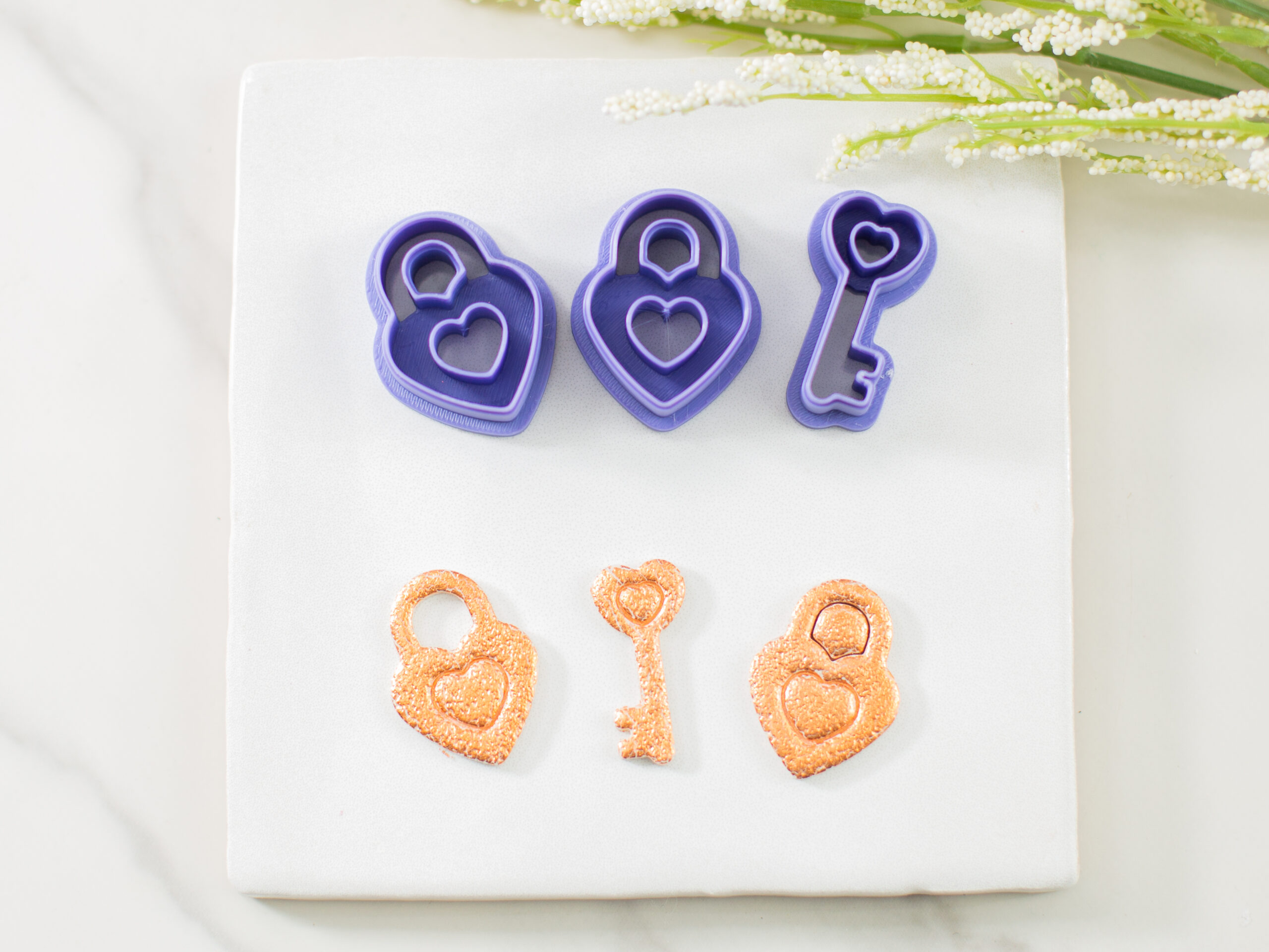 Lock & Key Polymer Clay Cutter Set – Cutout & Imprint Options for Valentine, Romance, and Statement Designs