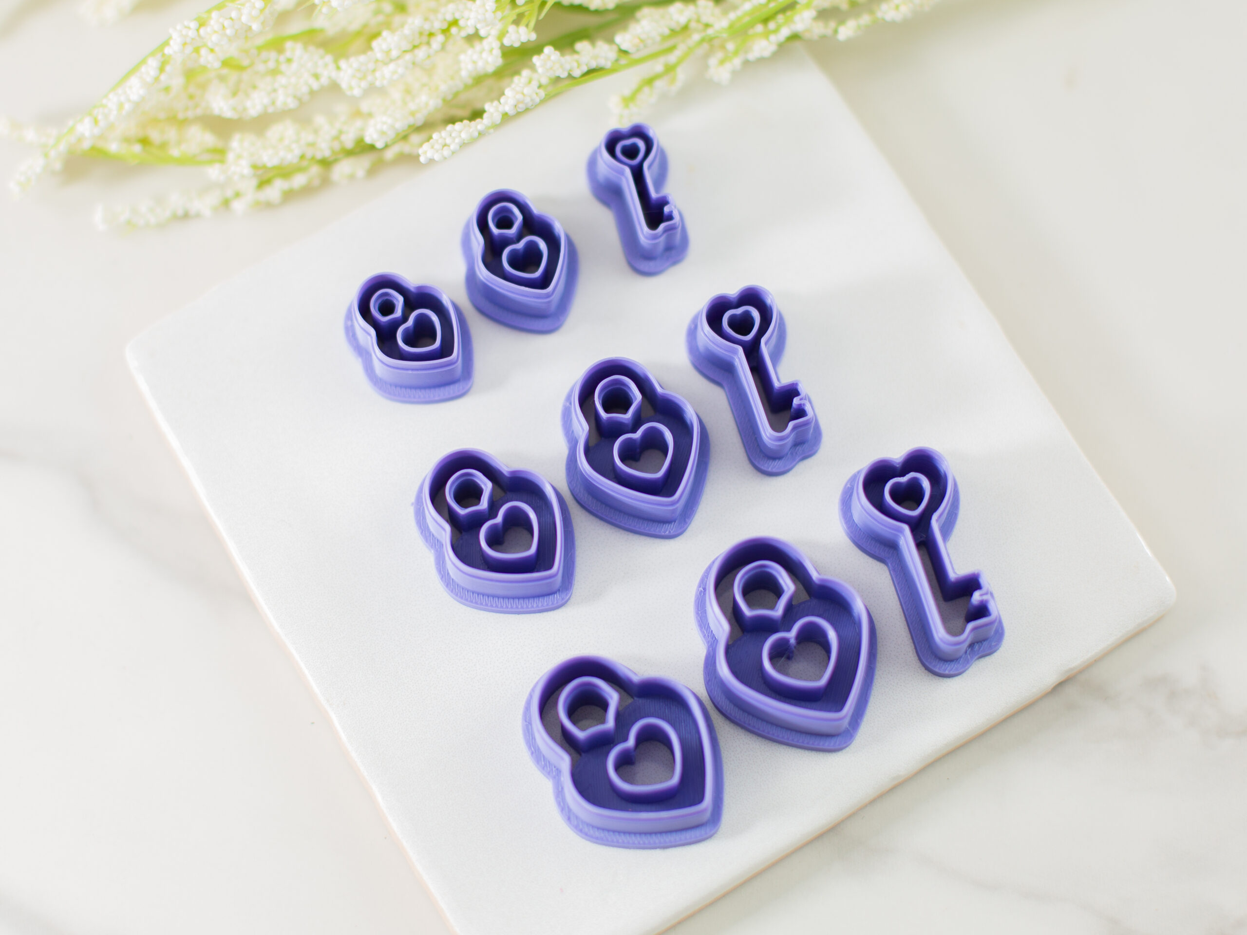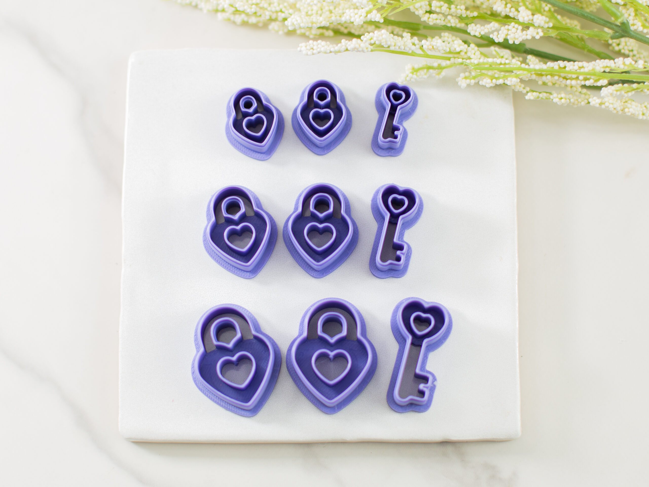 Create meaningful and romantic pieces with our Lock & Key Clay Cutter Set! This set includes two lock styles — one with a heart cutout and one with an embossed heart imprint — plus a coordinating key cutter for charming, storytelling jewelry.